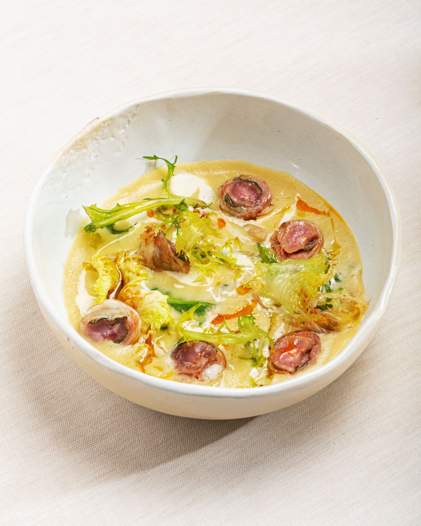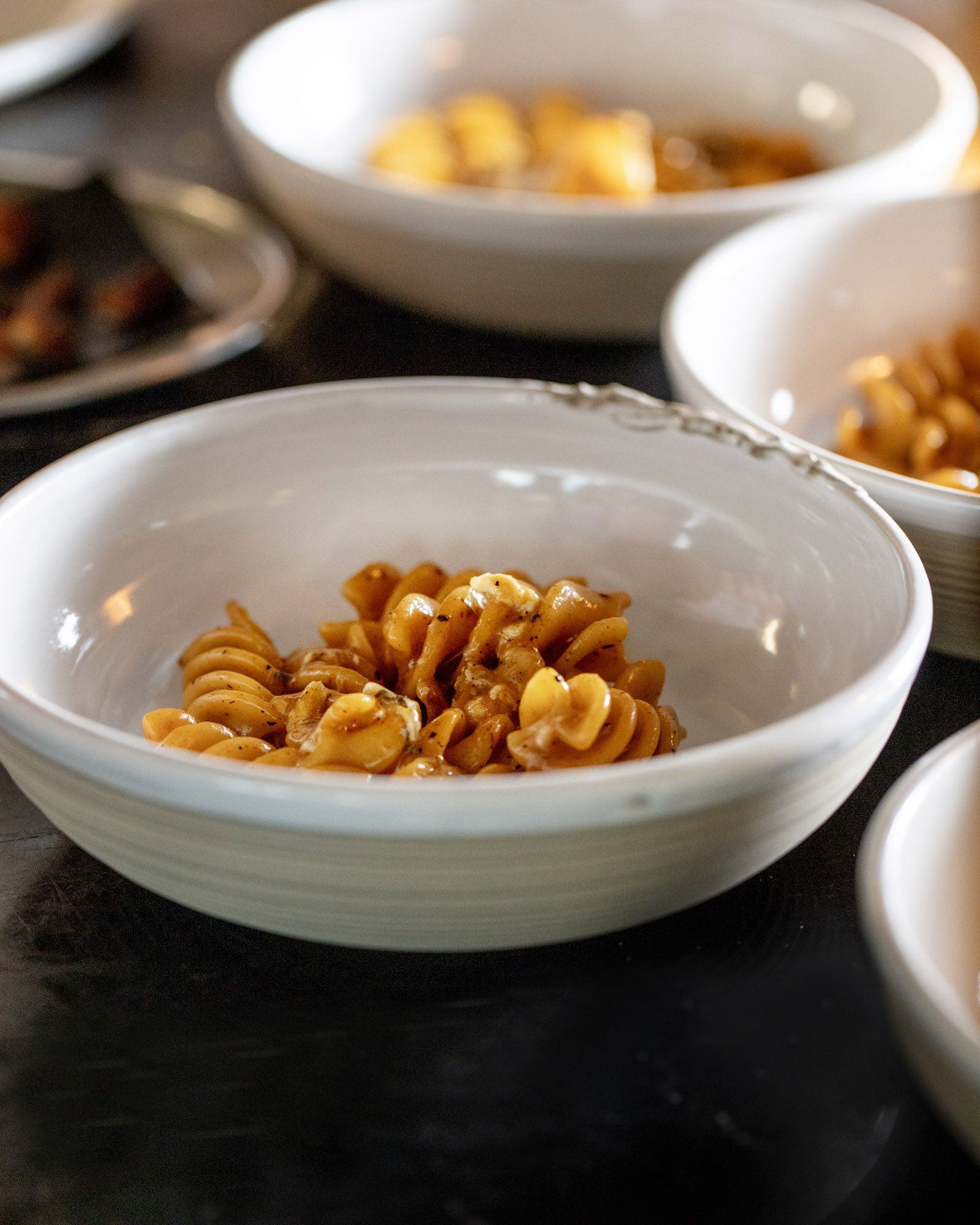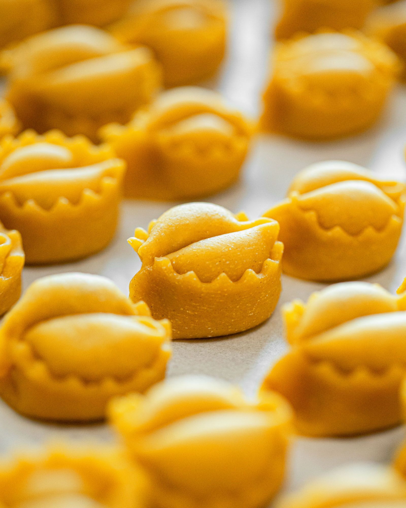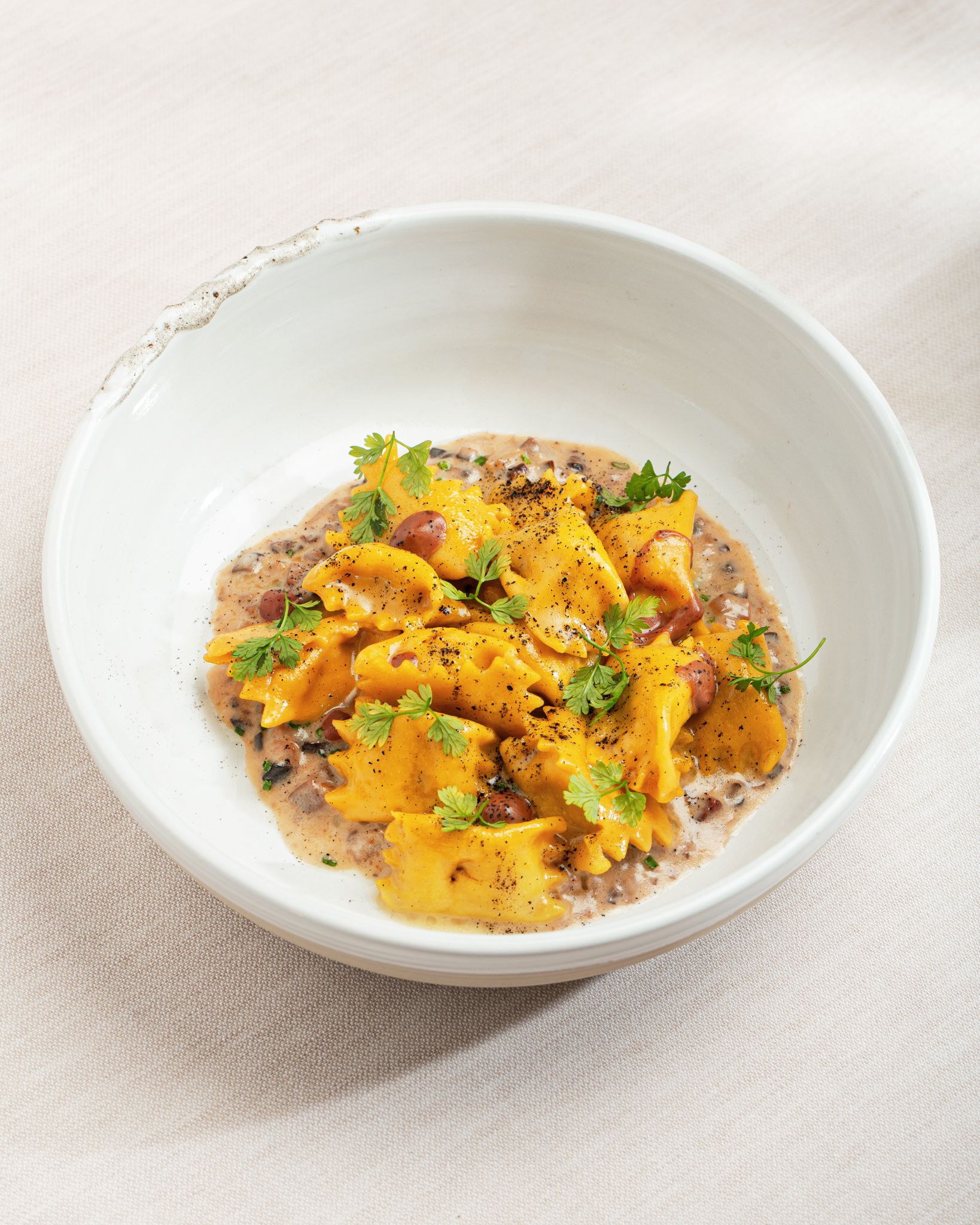 Tajarin o Anolini di fagioli bianchi, quaglia e cardi